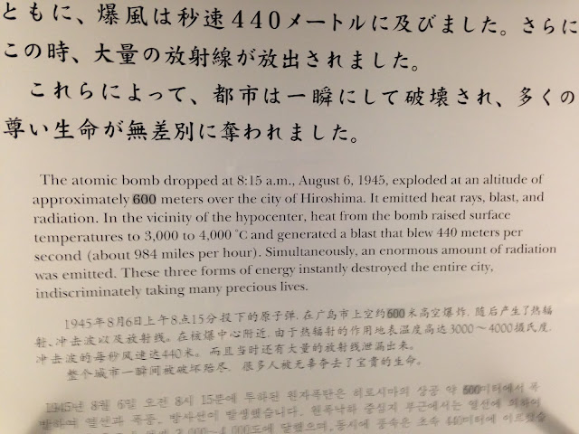 We went to pay our respects to the victims of Hiroshima. I have already been to Pearl Harbor to pay my respects on December 7th, 2013. I have been to Los Alamos Laboratory north of Santa Fe, New Mexico to the museum and seen the replicas of the bombs.